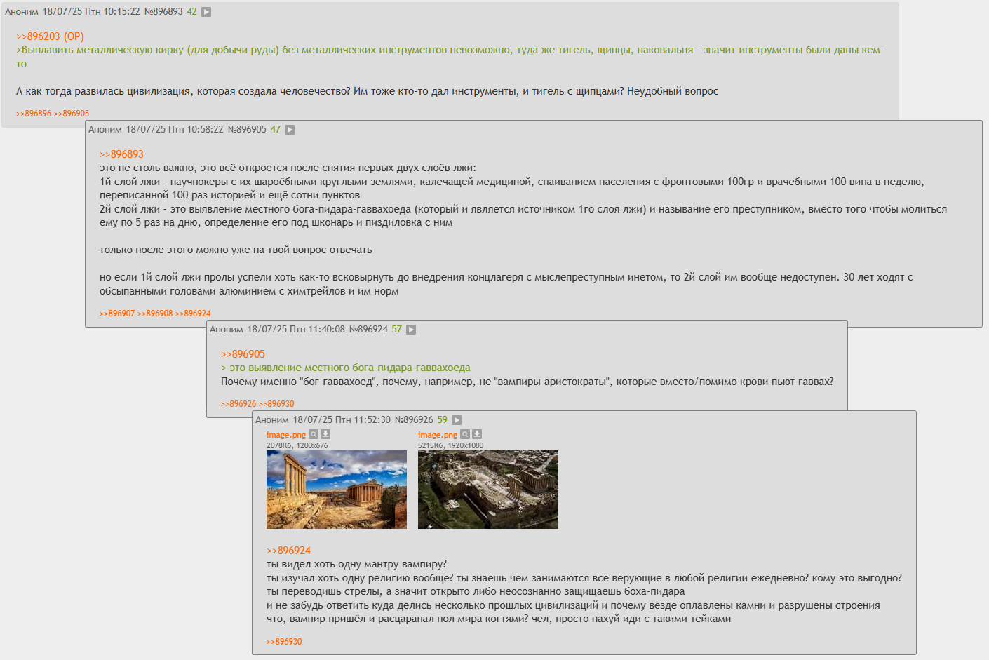 >>925299 >1. Строить могли на старом фундаменте Пруфов бы. На чертеже политеха все эти цокольные этажи видны. >2. Был дом имени Ерохина, а стал домом имени Сычева (тоже путаница с датами происходит) Опять же, пруфай. Здание политеха конца 19 века, почему-то раньше о нем никто не писал. >Я однажды на доме видел масонский символ, зашел во внутрь спросить какого года дом? Мне ответили - дом 19века, но вот ЭТА стена 16века. Это где? «Масонские» символы был повсюду в России вплоть до середины 19 века. В Питере всё в этих глазастых треугольниках. >>925307 >А, и напомню, вот эти карты, это даже не 1% того, что вызывает вопросы, на которые нет ответов. Я пояснил про карты уже, читать не умеешь? >Если сложить все воедино - мегалиты, пирамиды, вообще все древние огромные строения, карты где много воды, засыпанные этажи, города в скалах, обугленные города, не стыковки с датами, окаменелости, отсутствие лесов, скачок археологии в 18-19веке (словно знали где копать) и многое-многое другое, то как можно верить оф. истории после всего этого? Учитывая что историки сами в своих показаниях путаются и меняют даты постоянно... Ну вот и вся причина по которой этот цеховой вброс и делался: скрыть постройку мегалитов, стонгенджей, пирамид, и прочей «древней» хуеты в 17-20 веках. Теперь для людей, которые стали о чем-то задумываться, приберегли цеховую хуцпу про инопланетян/древние цивилизации/потопы/ядерные войны.