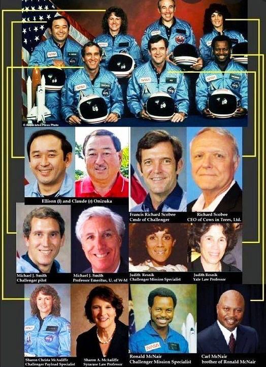 Ну а это без комментариев...)) Наукошлюхи на зарплате держат всех за идиотов, раз полагают что никто не видит их "полеты в космос" в консервных банках. На третьем фото "погибшие" космонавты шаттла Челленджер. Все что связано с космосом и полетами туда - ложь. Никто не выходил за пределы купола без разрешения хозяев фермы.