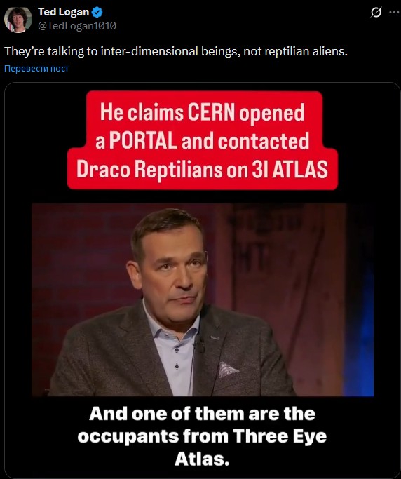 По его словам 3I/ATLAS – это корабль для путешествий между измерениями, на котором с Земли поедут души людей, в терминологии контактеров называемые “звездными семенами”. Корабль построили рептилоиды, у которых цивилизация где-то в созвездии Дракона и с которыми адепты на Земле связались через CERN.
