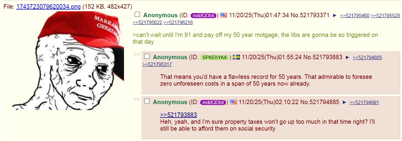 >>927867 (OP) Лучшее жилье то, которое вам досталось бесплатно от родителей. Хотел бы я жить в частном четырехэтажном доме в подмосковье со своим полноприводным японцем в крытом гараже? Хотел бы. Хотел бы я жить в двушке в москве возле метро и мцд? Хотел бы. Но вся эта хуйня не стоит того, чтоб вставать в 7 утра и вырабатывать гаввах десятилетиями. Выбор локации сделали за меня. Я же выбрал не играть с шулерами в гонке за шапку сухарей.