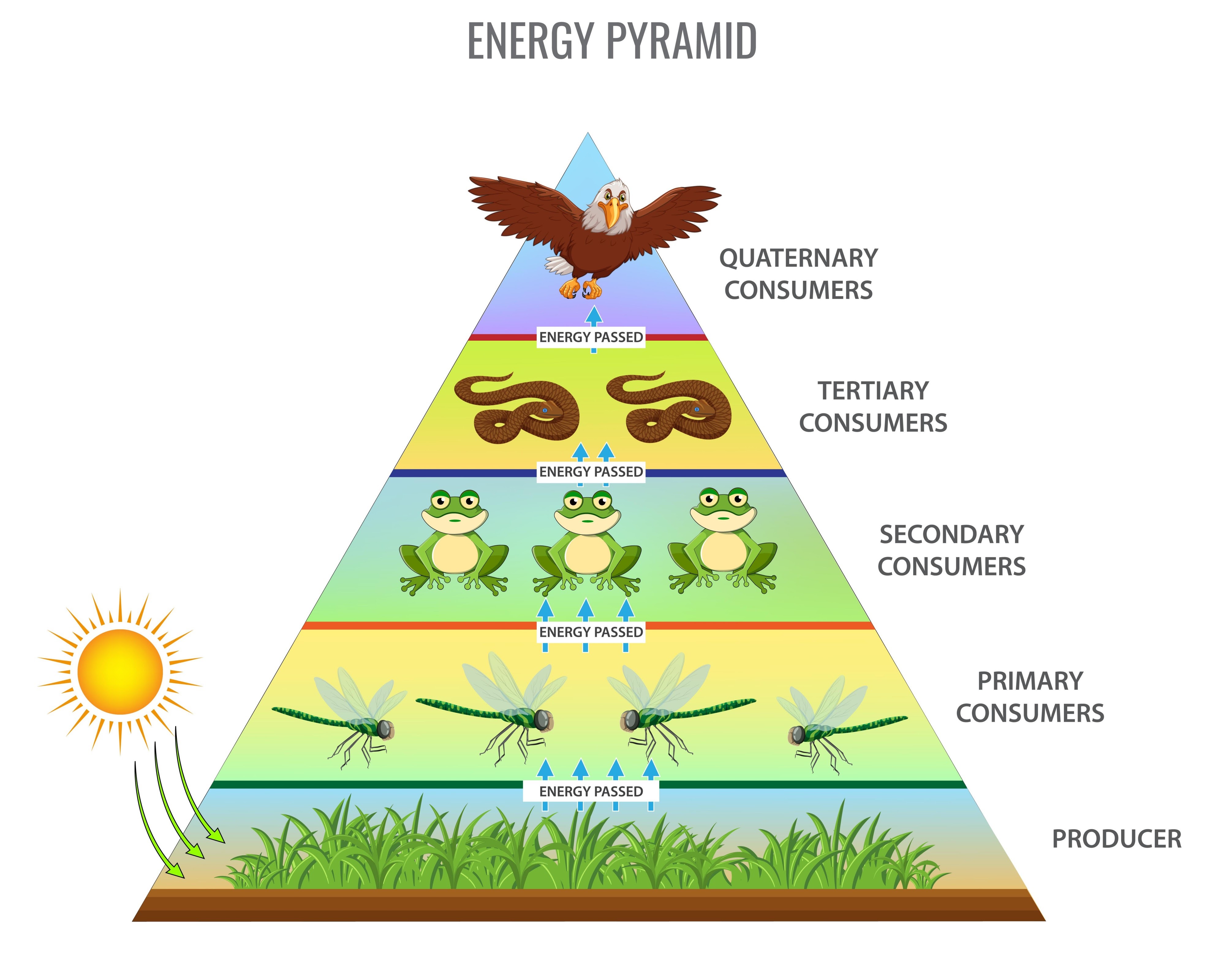 > На этой схеме видно, как энергия теряется на каждом уровне. Чтобы один волк жил, нужно множество жертв. Это пирамида жертвоприношения.