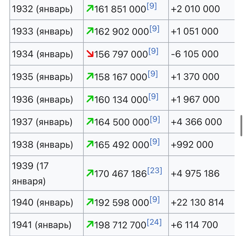 >>936969 (OP) Да это хуйня всё, просто мочёные размазали рост населения по годам чтобы создавалось впечатление геноцида, расстрелов, голода, и прочей хуйни. Вот смотри статистику. Сначала минус 6кк во время «голодомора», потом +-1кк. А потом хуяк +4кк в 39, +22кк в 40 и +6кк в 41 году. Очевидно чтоб создать видимость «чекистского геноцида» так размазали рост населения.