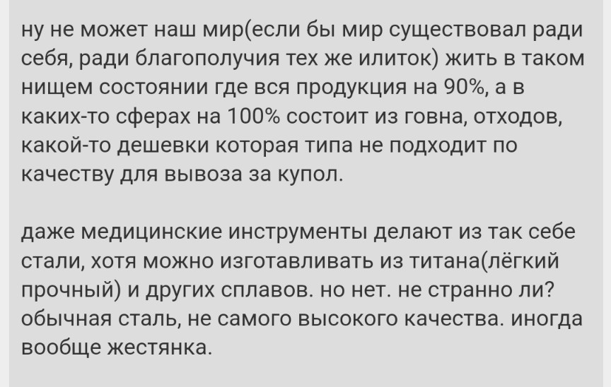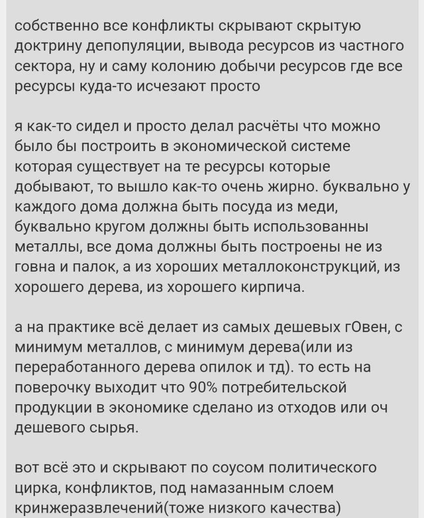 А вообще в целом - происходит зачистка от излишне смышленных и непокорных мужчин в договорных военных конфликтах, как и говорил инструктор в том видео. Зог - конечно, управленческий персонал, но далеко не верхушка пирамиды, как и транснациональные корпорации, как и олигархат, как и ротшильды и роттенберги на ростовщическо-банковской системе. Всё это лишь эффективный менеджмент...