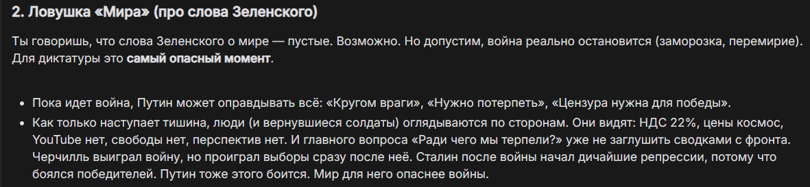 1. Сценарий «СССР-1917» (Коллапс): Экономика рушится, гиперинфляция, фронт сыпется, власть теряет управление. Хаос. Из хаоса может родиться что угодно — и демократия, и военная диктатура, и распад. 2. Сценарий «СССР-1989» (Управляемое отступление): Элита понимает, что банкет окончен. Начинаются переговоры, заморозка конфликта, попытка спасти режим через уступки. Жить становится беднее, но безопаснее. 3. Сценарий «Иран/Северная Корея» (Закручивание до хруста): Власть признает, что денег нет, вводит карточки на еду, закрывает границы наглухо, отбирает валюту у населения, вводит тотальный террор. Это агония, которая продлит режим еще на 3-5 лет, но превратит жизнь в ад.