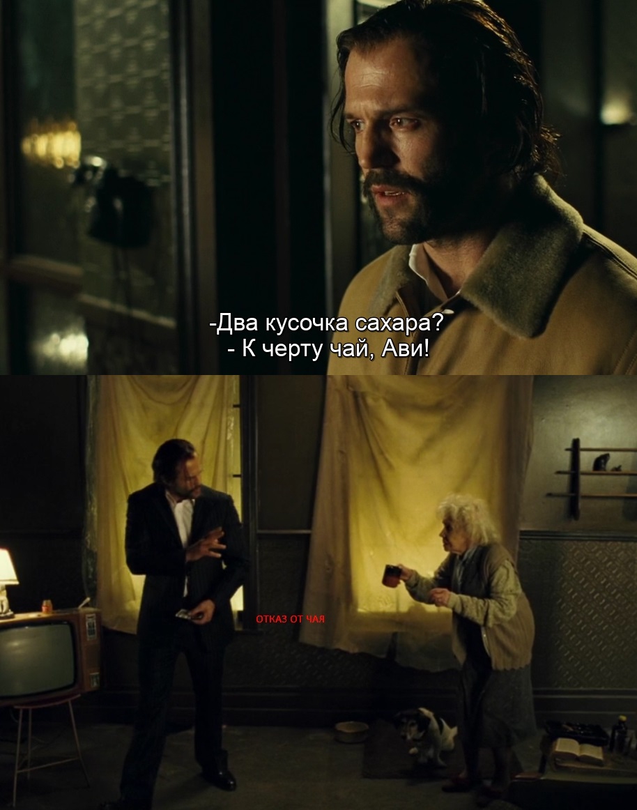 Фильм рассказывает о майнинге гавваха, происходящем под гнётом внутреннего голоса, власть которого усиливается с употреблением кофеина, голос чаще обращается к нам и как бы становится громче, ему легче вызвать в нас нужную реакцию -- волнение, страх, гнев, и всё это продемонстрировано в фильме во множестве сцен. Пока Джейк отказывается от чая в двух сценах ("К чёрту чай, Ави!" и сцена в доме старушки), Мака и Лорд Джон пьют чай дальше и всё так же находятся под гнётом Сэма Голда, который постепенно теряет власть над Джейком из-за того, что тот, преодолевая ломку (сцена с плохим сном, сцена в душе и сцена, где он проснулся с головной болью, и хотя его и "вырубили" перед этим ударом по голове, головная боль остаётся главным симптомом синдрома кофеиновой отмены), постепенно "слезает" с кофеина. В одном из монологов Джейк говорит, что Сэм Голд "умоляет о дозе" -- остаточная ломка, когда уже не физические ощущения, а сам внутренний голос говорит нам принять кофеин, чтобы вновь обрести над нами силу, введя наше тело в состояние кофеиновой раздражённости и эмоциональной лабильности, в которой троица Грин-Мака-Лорд Джон провели бОльшую часть фильма, причём двое последних производя гаввах гнева производили ещё и гаввах крови, убивая разных бедолаг по ходу своих бандитских разборок, а Мака в конце под кофеиновой тряской пролил собственную кровь -- он был выдоен досуха, как, впрочем, и Лорд Джон, жестоко казнивший провинившихся подчинённых. Так кофеин и действует -- выдаивает из нас все соки на физическом уровне, попутно давая Сэму Голду (внутреннему голосу) выдаивать из нас на уровне психики соки в виде разных сортов гавваха (страх, гнев, алчность, отчаяние, похоть и др.), а в конце заставлять нас в приступе острого гнева проливать чужую кровь или в приступе отчаяния проливать собственную.