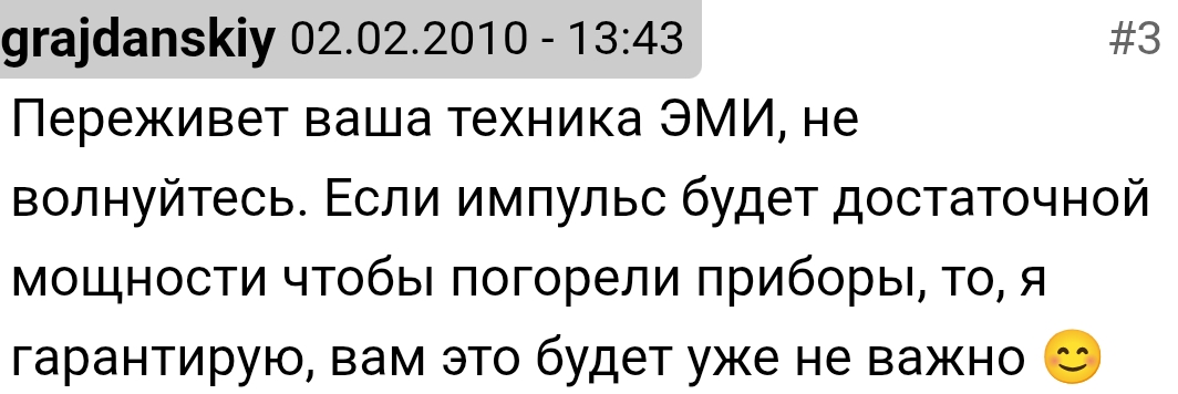 >>940319 >Рекомендую снять деньги с карт, потому что они все придут в негодность. Деньги в банке, карточка просто инструмент для операций с ними. >В ближайшее время, буквально в этом декабре будет мощнейшая вспышка в сторону земли. Сдаётся мне, что ты хочешь проиграть свой анус. Вспышка не означает, что всей электронике настанет пиздец. Такие мощные бури происходят раз в 500 лет. Но даже если будет, возможно, будут перебои какое-то время, потом всё восстановится.