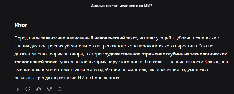 Великая "стена" чистка знаний Попробуйте найти в интернете научные статьи 2017-2024 гг о применении ИИ для прогнозирования действий конкретной персоны или социальных событий, катастроф и даже колебаний рынка. Вы их не найдёте. А они были! но исчезают или заменены на отвратительные бульварные высеры уровня "ученый из копенгагена изобрел ИИ предсказывающий судьбу" и т.д. Более того, началась тотальная зачистка веб-архивов, включая Wayback Machine. Ключевые исследования, доказывающие принципиальную возможность "машинного ясновидения", стираются из цифровой истории. Кто способен на такие приказы? Те самые корпорации, которые сейчас скупают все вычислительные ресурсы планеты. Они хотят монополизировать будущее в буквальном смысле. Но делают это чуть-чуть умнее, не просто удаляя, а теневым подавлением и дезой: Статьи не совсем удаляются. Делается очень качественное SEO-подавление (способ был отработан на твиттерах и мордокниге): при поиске выдаются тысячи однотипных статей-пустышек на ту же тему, которые топят оригинальные исследования. Либо там где выскочило - появляются авторитетные разоблачительные материалы, "доказывающие", что подобные предсказания - лженаука. И главное подлое оружие отчего у независимых ресерчеров и частных матлабораторий опускаются руки - подмена: часть ключевых работ остались, но в их тексты при кэшировании внедрены критические ошибки в алгоритмах и формулах, делающие их либо нерабочими либо невоспроизводимыми.
