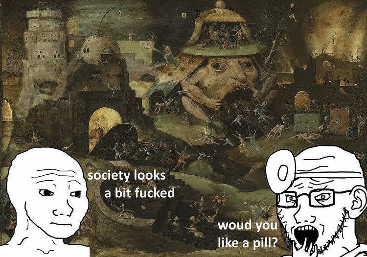 >>943654 (OP) Переломный момент как и у многих произошел в 2020, тут все понятно, не проснулись только совсем тупые/NPC. Но что-то подозревать я начал еще в 2018, спустя пару лет хождения по психуятрам, и параллельно прочим рвачам, в итоге съел блекпилл про медицину, поняв как гоев нещадно травят, в целом медленно копилась критическая база знаний о мире, политике, обществе, психике и т.д.