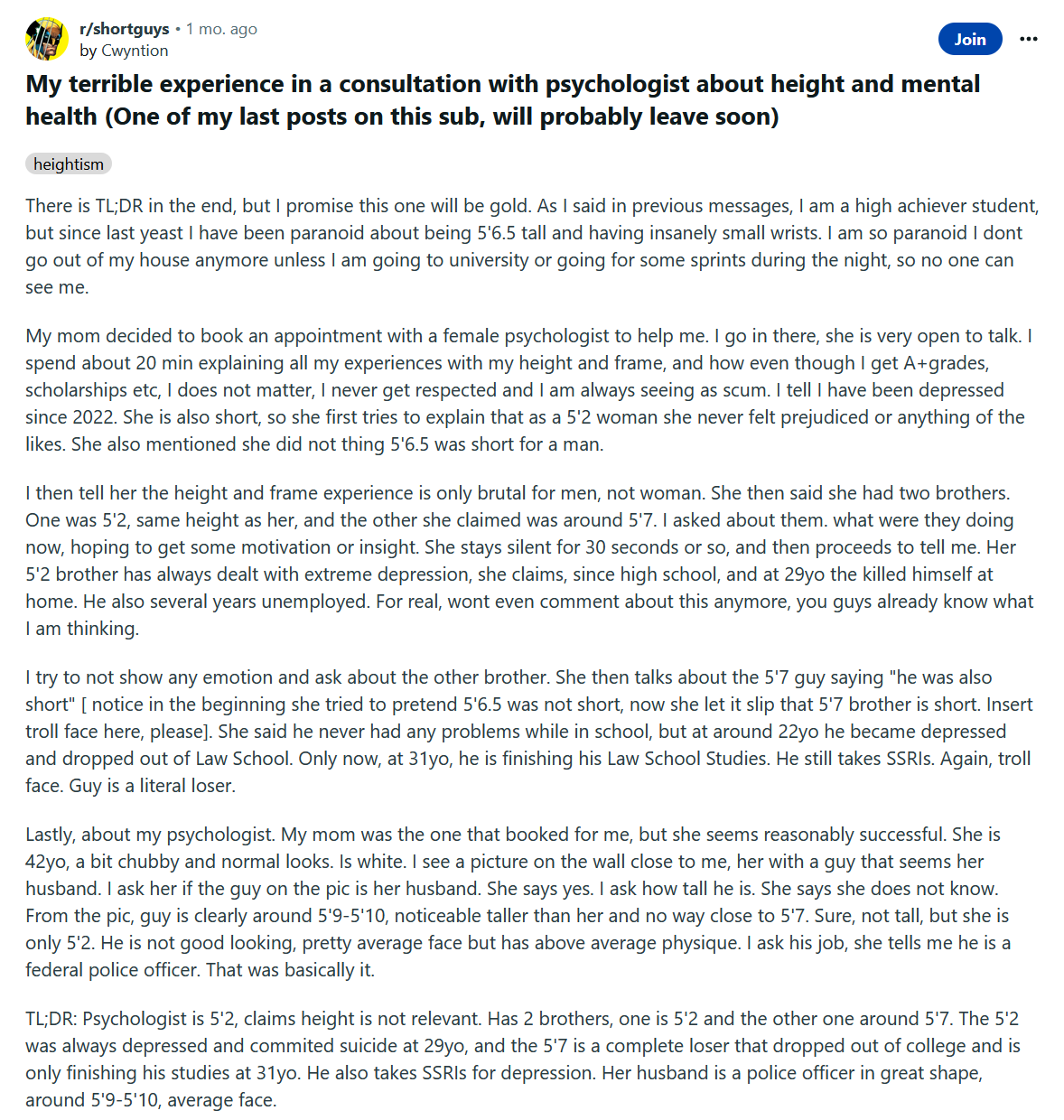 >>948752 Буквально меня описал. И сроки те же. Тоже в 2018 начал чутка что-то подозревать, что-то было явно не так, но что - хз. В 2020 всё стало ясно как день и именно тогда начал искать инфу и всё завалилось как снег на голову.