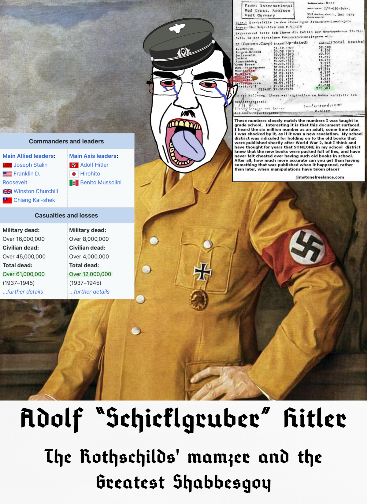 >>959384 Жид, не перефорси. Все знают, что Шикльгрубер это сионист и никого он в печах не сжигал, лишь убивал простых гоев в концлагерях да на войне (аж больше 70 лямов). А вот тебя на гилляку надо бы, говно жидовское, за все ответите