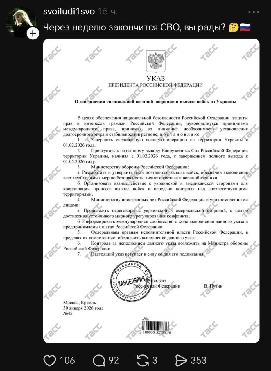 Хохлы чё-то знают, начали писать про мирный договор весной.