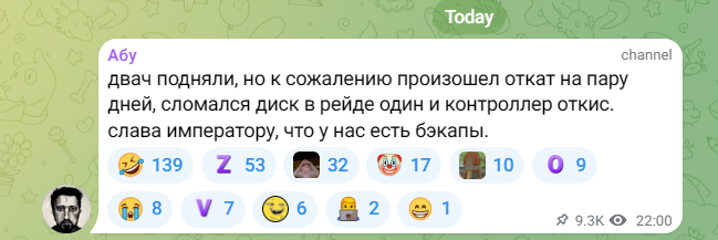 >>949298 >сама страна просуществует не более пяти лет Правильно было бы сказать - не больше пяти зим. Я теперь понял почему наркомана не валят, да и других. Он на месте решает вопрос. Закрывает проект. Уже что могли спиздили, теперь распил на куски. Всё по завету МОЛЬФАРА НЕЧАЯ который с 90х это предсказывал. Но его убил сектант с крестиком, зарезал деда за неудобное.