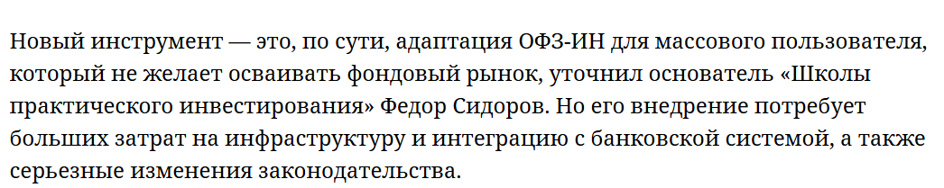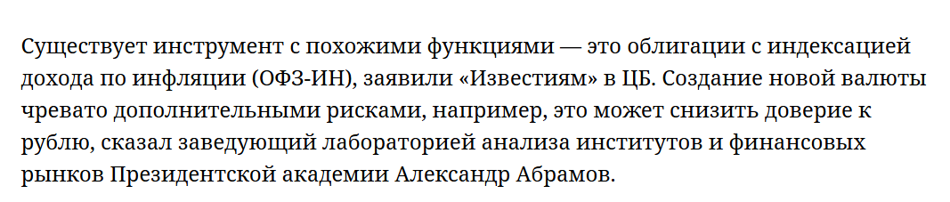 >>952426 >ланируется, что новый финансовый продукт будет отделен от традиционного платежного рубля и обеспечен корзиной биржевых активов, чтобы его стоимость ежедневно индексировалась. Эта мера призвана снизить объем наличных сбережений, которые, по оценке специалистов, превышают 16 трлн рублей. Инициатива может стать стимулом к развитию новых форм накопления и укреплению доверия к финансовой системе. > Не ново , при Сталине были такие облигации " гос займа" потом всем простили .