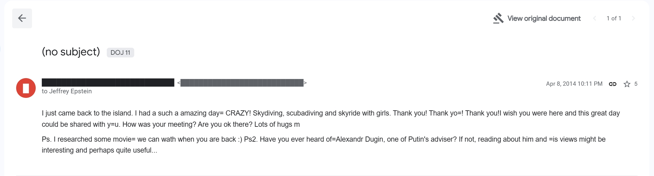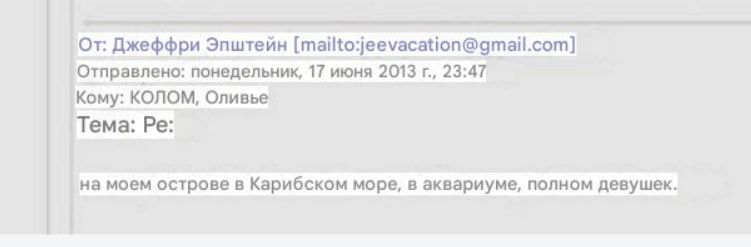 ⚡ В письме с Джефри Эпштейном за начало 2018 года обсуждалось приглашение баб из краснодарского модельного агенства Shtorm