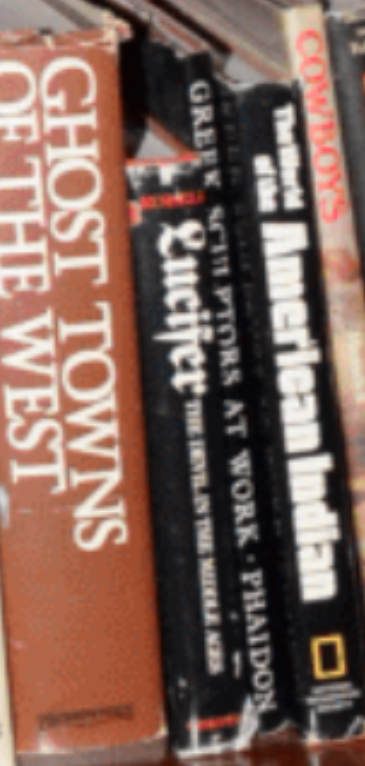 Ghost Towns of the West (чётко видно слева, классическая книга по истории Запада США, авторы вроде Lambert Florin или похожие издания) Lucifer (тёмная книга, это Lucifer: The Devil in the Middle Ages Джеффри Бёртона Рассела — как мы обсуждали ранее) Pioneers and Preachers (видно "Pioneers and Preachers" — вероятно, книга по истории религии/освоения Америки) Scottish Painters (видно "SCOTTISH PAINTERS" — книга по шотландской живописи, возможно, "Scottish Painters at Home and Abroad") The Urban (частично "THE URBAN" — возможно, "The Urban" или "Urban something", например, "The Urban Revolution" или подобное) Spain in America (возможно, "Spain in America" или серия) The World According to... (частично видно) Antiques / Antlers (не очень чётко, но похоже на "Antiques" или "Antlers...") The Ultimate... (внизу полки "THE ULTIMATE..." — возможно, "The Ultimate Book" или серия)