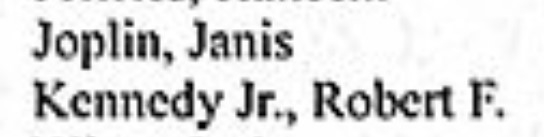 >>958480 >Joplin Janis >Kennedy Jr Robert F Что тут может смутить? То что Джоплин сдохла в начале 70-х? Или то что подсос Трампа был на педофильном острове? Трамп там тоже был. Может какая ошибка при публикации произошла?