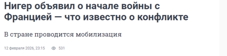 Вот вам пример фейковой новости, смысл которой в том что бы просто в прикол написать слово Нигер. Ну такая лайтовая расисткая шутка. Понятное дело что никакой войны не будет. Просто инфошум, забить голову народным массом чепухой.