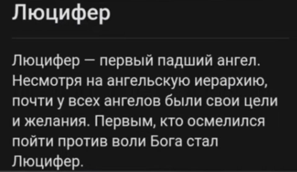 >>962853 > Сатана́ (от ассир. ܣܵܛܵܢܵܐ са́тана, ивр. שָׂטָן сата́н,[4] др.-греч. σατανα сатана́, арам. סטנא сатана́, араб. شيطان шайта́н, геэз śayṭān — «сатан(а); противник;[5] клеветник»[6], от сев.-зап.-семитск. корня *śṭn «сатан» букв. «быть враждебным», «обвинение»[7]) в религиозных представлениях авраамических религий — главный противник небесных сил на земле и в небе[8]. Ну и как это противоречит ОПу?