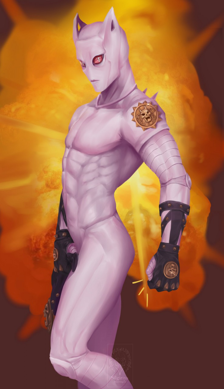 >>3398675 Killer Queen, стенд Киры, всё своё существование мог лишь смотреть со стороны на удовольствия хозяина, помогая ему добыть руки для его грязных развлечений, но никогда, никогда не привлекаясь к самому процессу. Естественно, стенд, как отражение души убийцы, разделял его вкусы, возбуждаясь от созерцания недавно отрубленных рук, о чём невозможно было узнать из-за отсутствия члена у духа, что не умаляло желание вмешаться в процесс, чтобы помочь мастеру "снять напряжение", но Killer Queen сопротивлялся этому желанию, ведь он должен действовать только по приказам. Сопротивлялся до этого момента. Наконец, он решил дать знать о себе, сняв перчатку и положив правую руку у паха Киры, намекая на возможность использования и её, ведь скорость движений стенда может дать по-настоящему страстные ощущения.