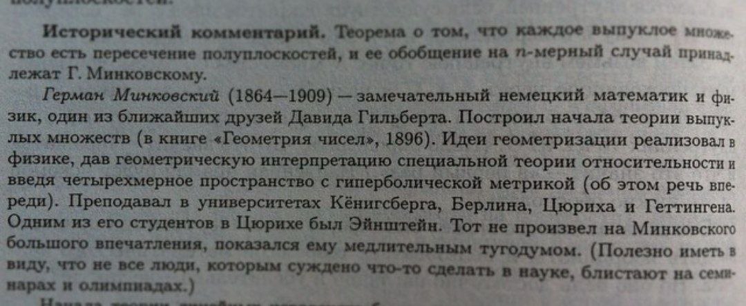 Отвечу на пост из потертого треда: >Контингент на физтехе У нас не все так плохо. Ну по крайней мере такого треша как ты рассказывал не происходит. Не знаю как общая масса, но те с кем я общаюсь очень умные, в отличии от меня, и хорошие люди. У меня приятель на первом курсе уже читал книжку по линалу Кострыкина и Винберга и анализ Фихтенгольца, параллельно с нашим курсом линала и анализа. При чем читал не показушно, а вполне серьезно и осмыслено. Показывал мне разные виды доказательств и формулировок оттуда и сравнивал с нашими. Еще ко всему этому сразу понимал и усваивал весь наш курс. Сейчас он читает Зорича и какую-то книжку по теорверу Мой товарищ, фанатеющий по Шапошникову, собирается начать посещать НМУ уже очно, а не смотреть лекции их лекции с ютуба. Подобных людей еще много и при всем этом никто из них не страдает снобизмом и завышенным чсв, всегда готовы помочь и что-то объяснить.