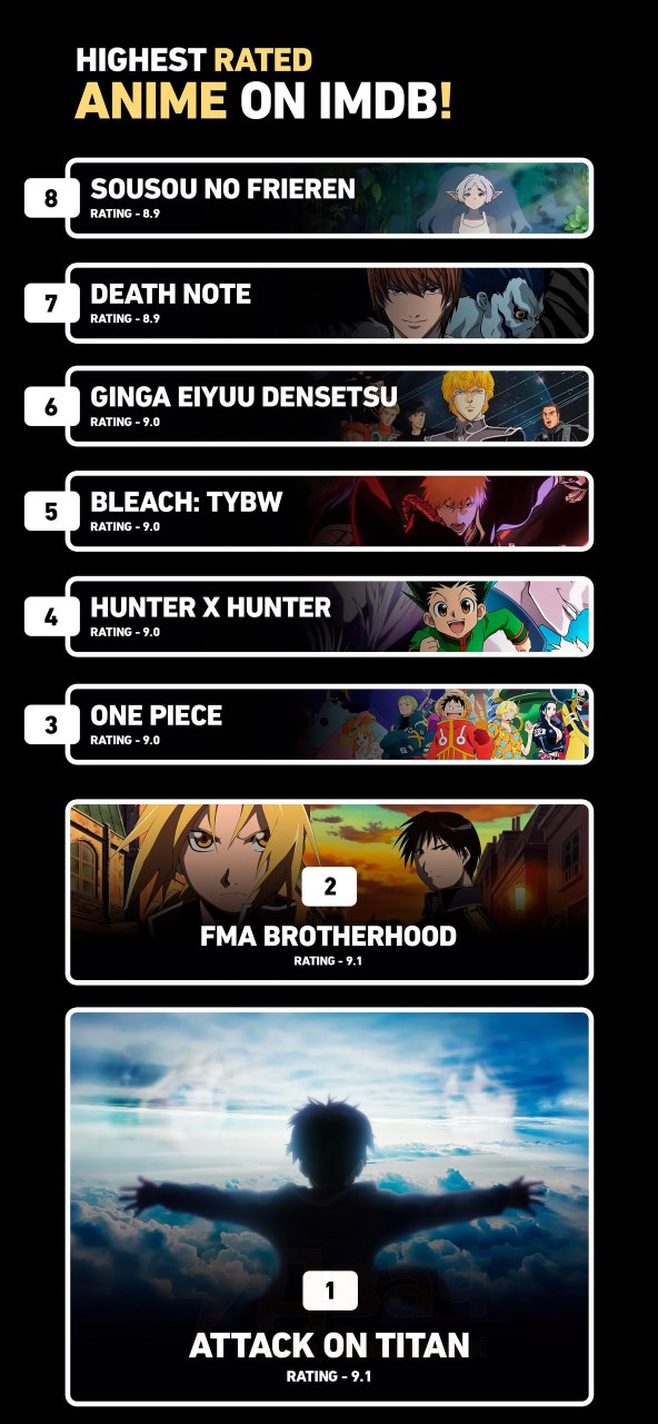Giass не осилил 2х серий. Нафиг. Gintama не осилил 1й сезон. Не достоен. Berserk 1997 Ну не знаю, норм в принципе, но по сравнению с мангой слишком обрезанное и блеклое. Monster все не могу добраться. х.з. Haikyu кажется дропнул на первой серии. One pucn man так же как и берсерк, неплохо но манга лучше. Naruto не надо. Оно хорошо было первый сезон, без филеров. Шпудень уже тягучий и скучный. Не достоен. Врата штайне не смотрел. Dragon ball z не смотрел. Vinland Saga не смотрел. Но мне кажется будет как с берсерком и одноударником. silver fang Не смотрел, но дроп оп постеру. Ненавижу еб..чих собак. cowboy bebop топ. М.б. даже топ 3 из представленных. Фрыня топ. Особенно первый сезон. Десу нота. Кажется я дропнул, но не потому что не понравилось, а чет другое было. Не помню почему я его не досмотрел. Какие педики в космосе не смотрел. Bleach: TYBW не смотрел, тому что мангу уже прочитал и не интересно. Наврядли там лучше первой арки, до хуеко мундо. Hunter x hunter. Даже не стал смотреть. Сенены задолбали тогда. Да чет и не хочется. One piece Бууэээееее FMA топ без вопросов. Attack on titan Наверное все же топ, но аниме считай что не смотрел. Когда манга только выходила и до аниме было еще далеко, каждый месяц ждал новую главу как манны небесной. Интересно было пздц. Но когда вышло аниме, поймал себя на мысли, что смотреть то и не интересно особо. Серии тупо прокручивал, кроме некоторых моментов. А потом и к манге интерес постепенно угасать стал, особенно после подвальчика, когда паропанк и окопы пошли. До подвала я бы на 1е место поставил, а после ну разве что в топ 20. Итого, из того что я смотрел топ3 это: 3 Фрирен 2.Алхимик 1. Бибоп. А теперь спать. >>3702377 >Бессонница после школы Да? Я не помню. Ну рад, что тебе понравилось. У этой авторши, еще похожие работы есть. Только манга. Особенно Кошачий храм Тион.