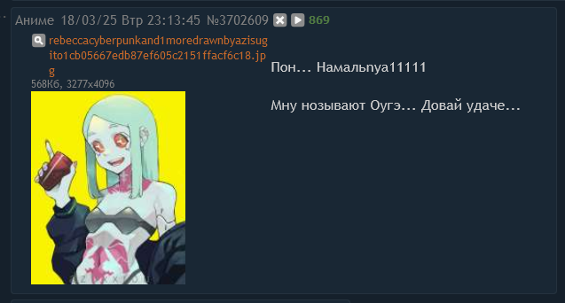До мну, кста, дошло... Тот втарой постир ето Оуге из вашего чятика, дя777