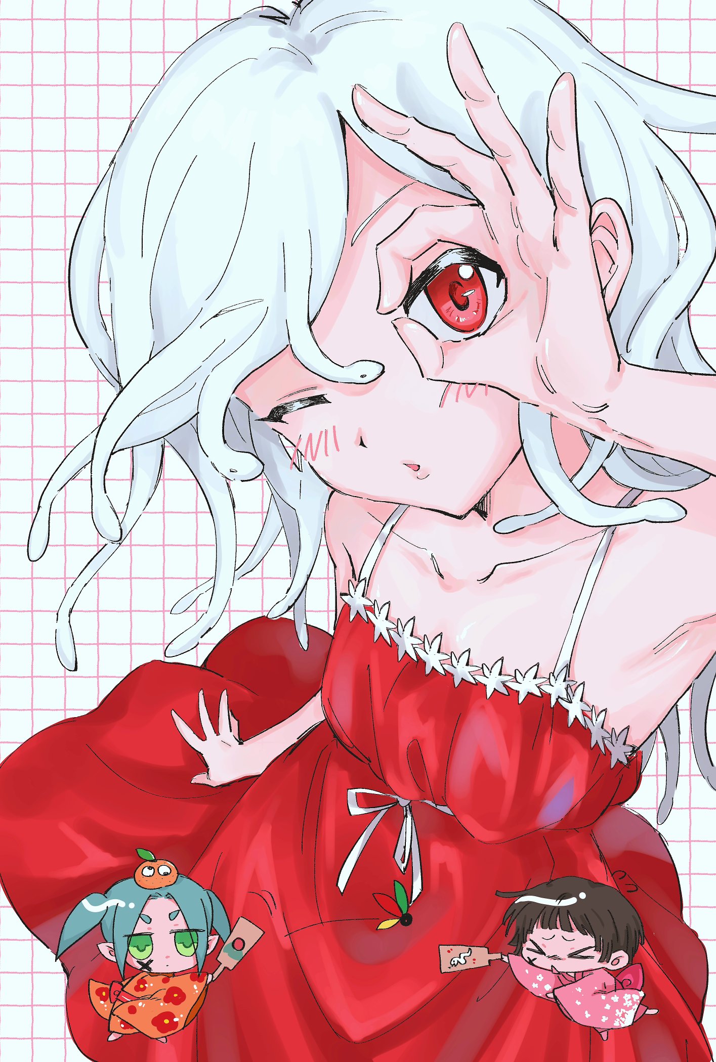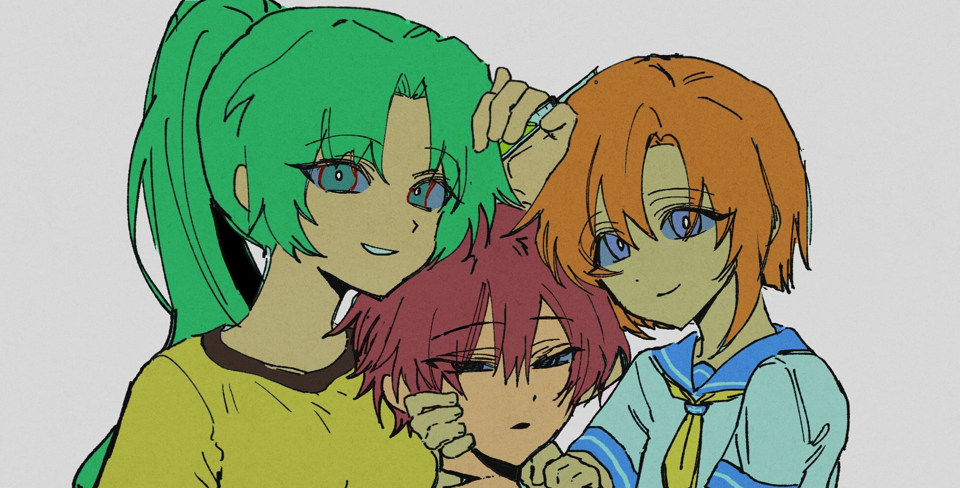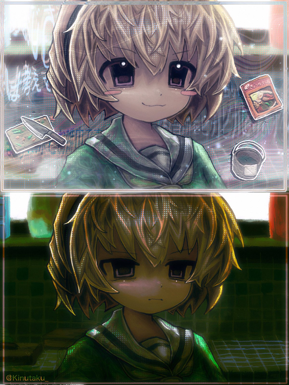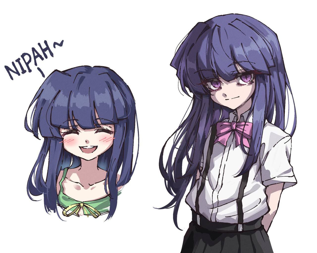 На пикрилях у ниё разни цвет валос111 То фиолитови то чорни111 Цвет глаз другоини... Всо другоиное вощще... Толька чолка бохожа111 А адеждya ня Греньку похожа на последним арти... Лишш отчyaсти111
