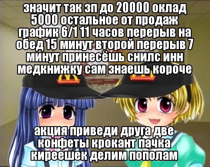 Сори, было так лень придумывать ответы. Короче, в луже живёт кит. А раздача стикеров с нарисованными персонажами в гречневом сетевом магазине это кринж, потому что игры и аниме нужны чтобы отвлекаться от гречневого быта, а не ассоциироваться с ним!