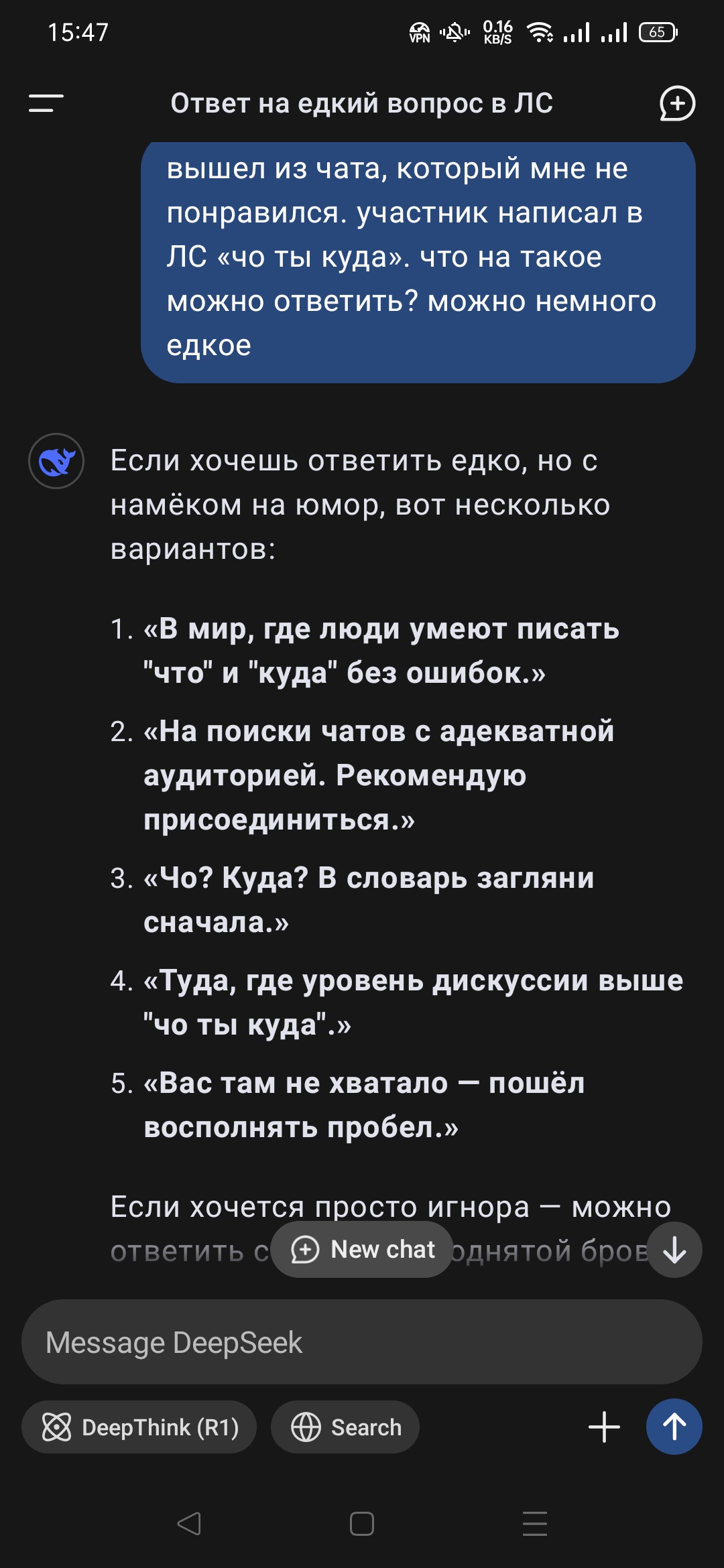 Постепенно прихожу к концепции говорить то, что думаю и хочу, нежели то, что приведет к импульсивно желанному течению диалога/события.