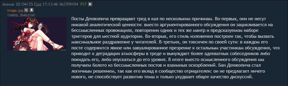 >>3709355 >Ты про какой пост Этот, где я ответил спустя почти час. >>3709487