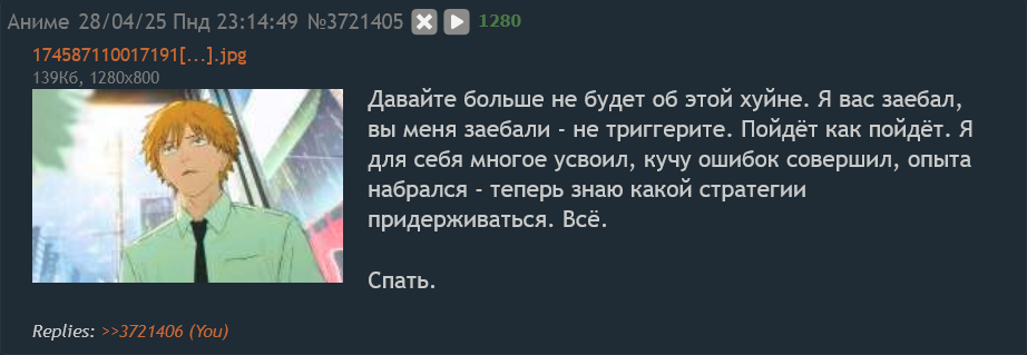 >>3719098 Не переживай ты так, если я перестану постить то значит просто ушел на Ычан же