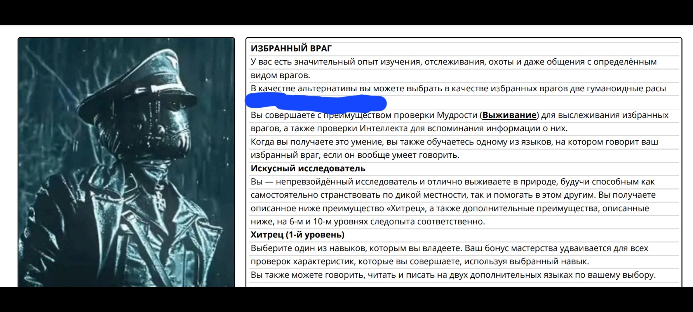 >В качестве альтернативы вы можете выбрать в качестве избранных врагов две гуманоидные расы (например, гноллов и орков). О как, значит целый класс есть, который борется за чистоту мира от неугодных рас...