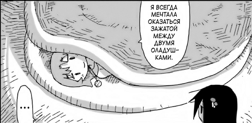 Ну гений, просто гений. Ждать главу две недели и получить кучу фреймов трусов потому что в одной из предыдущих глав всем понравились ее панцушоты... это такой уровень постироничгого фансервиса что просто пиздец...