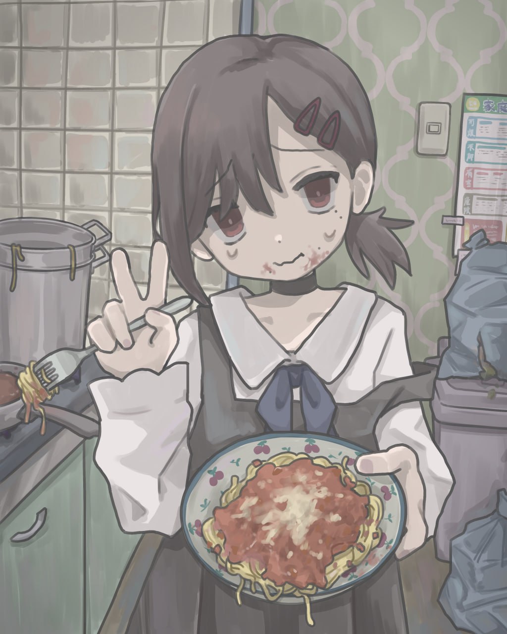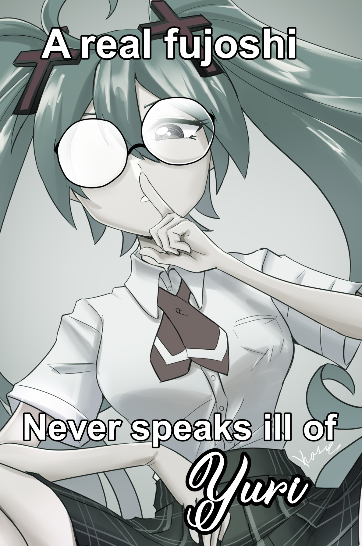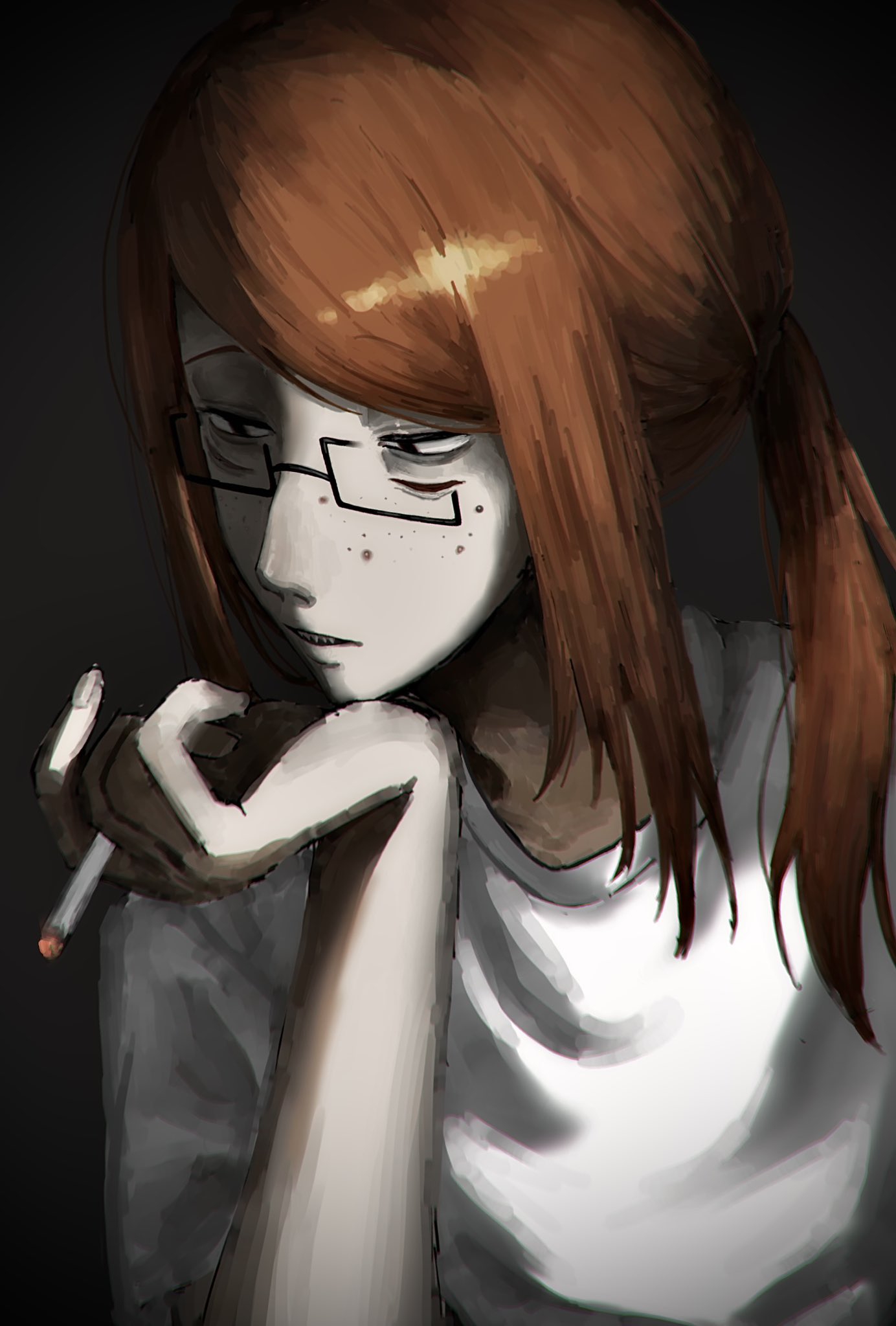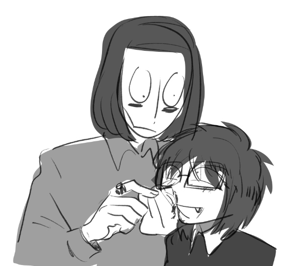 > В каком месте? Ну, ты начал реквестики выполнять же. Ножку вот дорисовал... А так, она немного напоминает Конату и у неё есть гетерохромия + отсылка на тему с персонажем из тохи, про которую ты говорил.