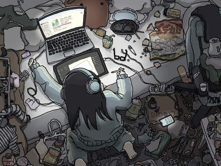 "Denpa" is a Japanese term that literally translates to "electromagnetic waves" but is used to describe people who are disconnected from reality, often due to wild fantasies or delusions, and sometimes influenced by perceived "radio waves". It is also the name of a subgenre of Japanese music and media, including visual novels and anime, that features this theme of psychological disturbance, strange or nonsensical lyrics, and conspiracies. Гудящие провода это серийные эксперименты Лейн. Серийные эксперименты Лейн это дэнпа мультик.