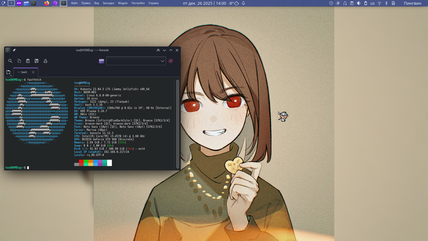>>3832889 Не секрет, обсуждали итт. Unix-compabitable Desktop Environment на TTY для слабых ПК на базе существующих >>3832890 Прости, если обидел непониманием. Там Мейда писал > Ты вымогала даже не ень ги а паспорт. А ты не опровергал. Я вообще хз че у вас там было