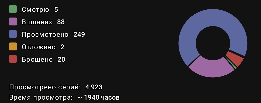 Сюда же я мог бы отнести многие аниме фильмы, но для меня это-отдельный жанр. Они почти все прекрасны, но тогда никакого списка не хватит. Надеюсь, что кто-то здесь так же оставит свои мысли и свои предпочтения в аниме. И да, это печально, что за 250 просмотренных аниме, набрался топ только из 5 позиций... (Хотя наверное можно было бы добавить седьмое аниме- киберпанк)