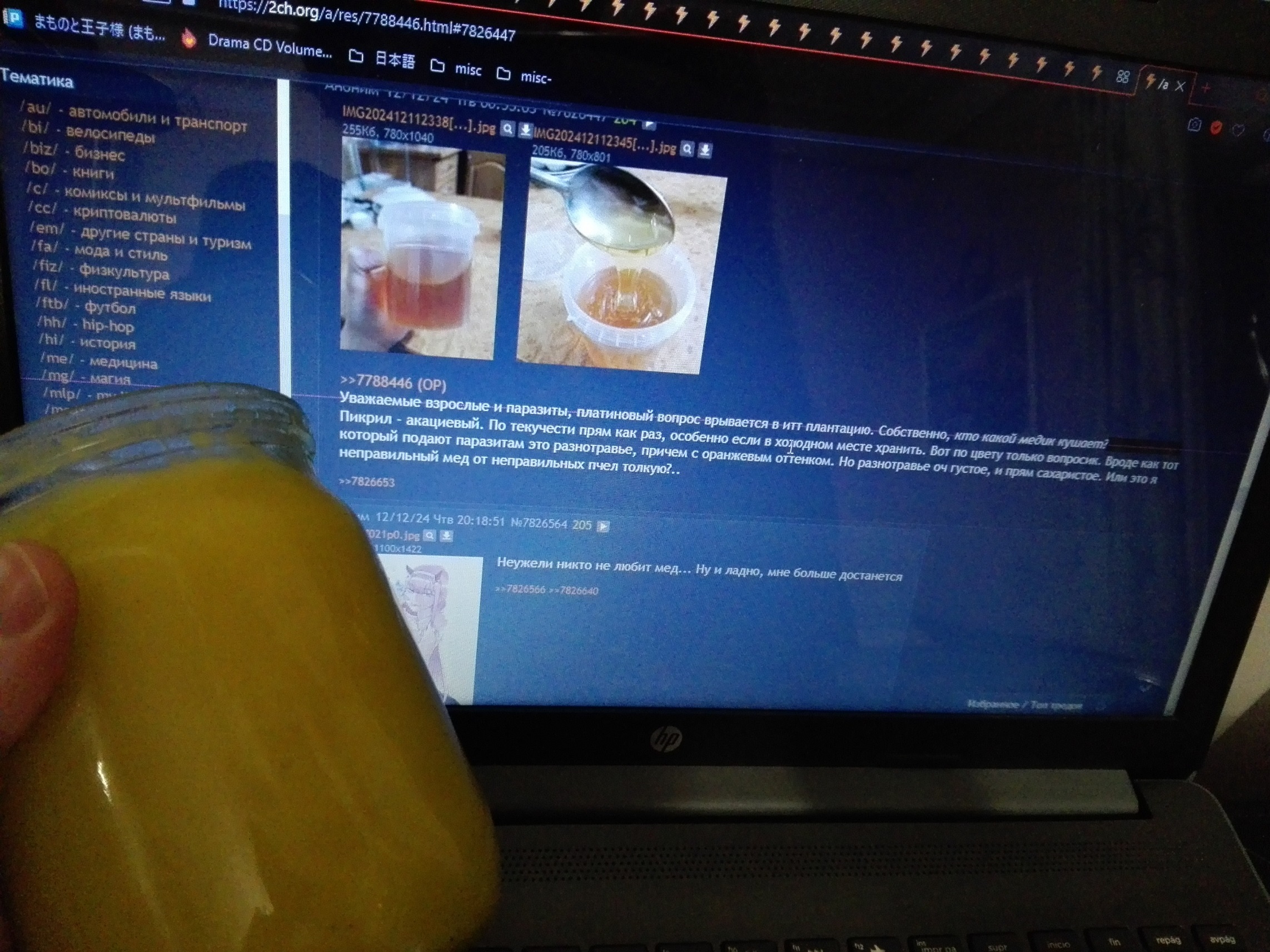 >>7935270 Не, местного разлива. Местный дiд торгует мясцом и как раз вот медом. Думал взять баночку как у >>7826447, даже как раз по цвету больше на тот который 02 кушоет походил, но дорогой, блен! Не хватило. А потом подумал "плохо чтоле? хорошо!" Я его ведь не часто ем, да и нельзя много поэтому и взял такой. Хотя честно, от одного мысли с представлениями пикрила всегда доставляет...