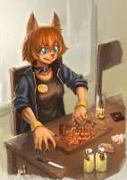 Выглядела она... Неслабо. Ростом с тебя, почти такая же в плечах, но с ухоженным пчелодевичьим лицом (что выражалось в черных "белка" глаз и толстеньких усиках, растущих из начала лба и жёлто-чёрным горловым "мехом", выделяющимся, будто предмет гордости, из её довольно непримечательного комбинезона с логотипом одной из тысяч компаний, производящих мёд и сопутствующее (т.е. всё, что только можно), в этих краях.