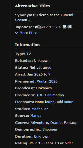 В 2026-ом же. Но я и первый не смотрел, большие сомнения что это больше чем просто дженерик анимефэнтези с роудмуви по всяким королевствам.