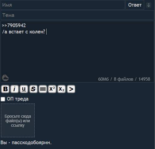 >>7905827 (OP) На ОП-пике очень хорошая картинка. Вот в таком /а/, где за модерацию отвечают люди с настолько хорошим вкусом - я и хочу жить и общаться. В качестве поддержки такой линии руководства разделом я даже купил пасскод. Спасибо, Абу, за адекватных модеров в /а/!