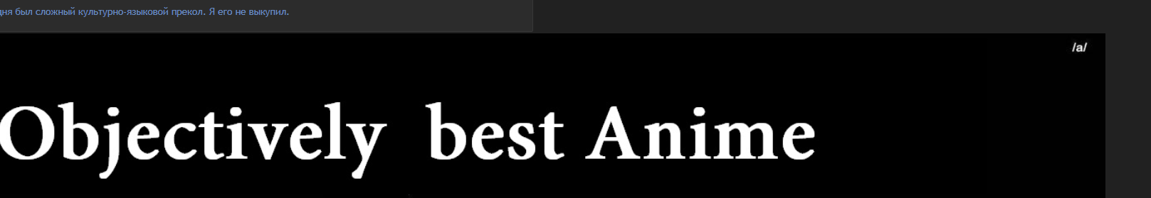 Нет ща возможности скачать, и тут интернет какой-то ебаный, часть плееров не грузится, в имеющихся нет аниме с сабами. И боже, какой же это ад. Я перепробовал все озвучки, во всех ёбаные натрашки пищат, как свиньи, а аниме на фоне тихое. Есть шебм где вроде картинка с какой-то аниме тян или просто тян или хуй знает с чем, и там пиздец громкий скример со свиным визжанием +20дБ, схожие ощущения. Ну вот одна только более-менее. Кто-то вообще нии-сама перевёл как БРАТИШКА. Сука бля поехавшие.