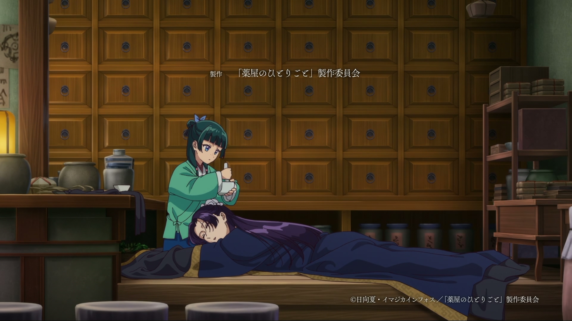 Начиналось хорошо, но с середины прям тяжело пошло. Закрывающая сюжетная арка чудовищно унылая. Прынц - тряпка. Аптекарша - кукла. Вощем, такое довольно формальное продолжение хорошего тайтла. Можно не смотреть или отложить на совсем потом, чтобы персонажей старых повидать. 5/10