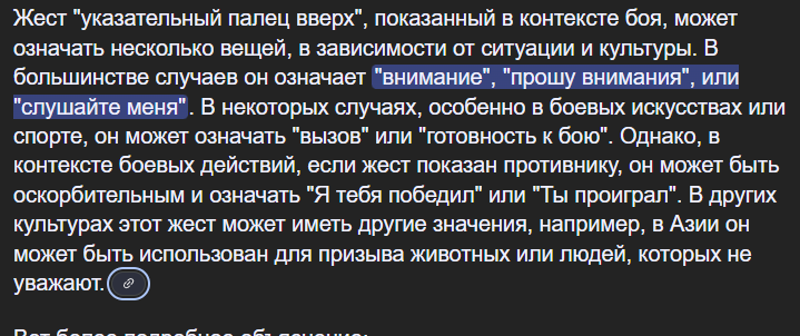 >>7910719 если верить "арии", то это или команда байкерам куда-то ехать ("мой друг давал команду братьям вверх поднимая кулак") или признак принадлежности к фашистам ("кулак как флаг над буйной головой, вожак сказал свое возьмём слихвой")