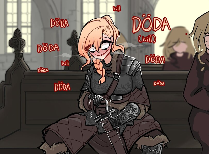 Злые женщины эрои. Чёт северная ведьма пока не выглядит связанной с кем-то исекайнувшимся. Что с глитчами скина гг, в этом должен быть какой-то смысл, кроме напоминания что он мао?