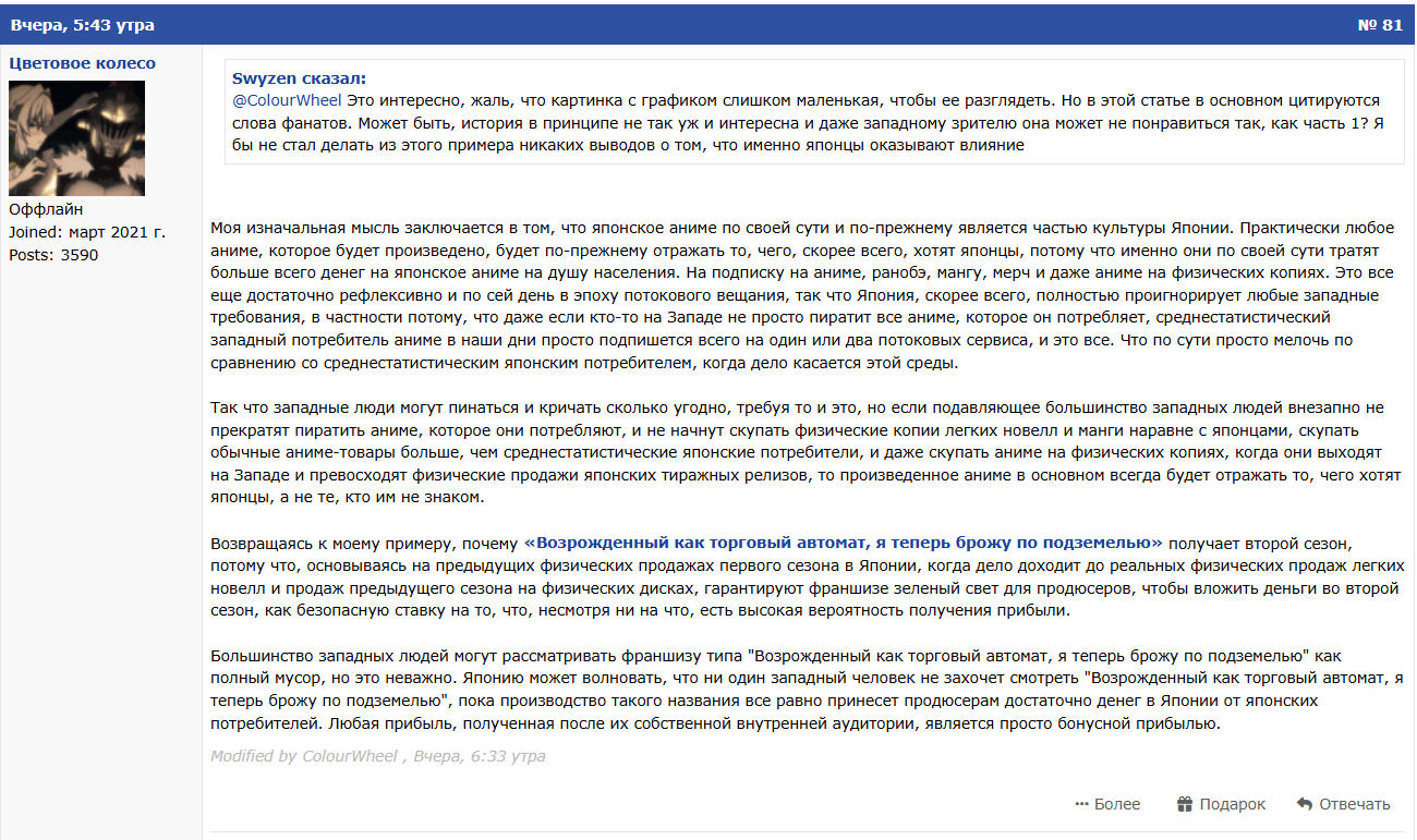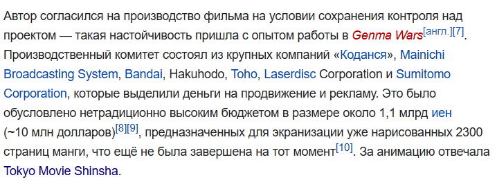 Аниме, кстати, ахуенное, одно из лучших, что я видел, мб даже мангу почитаю. Она длинная?