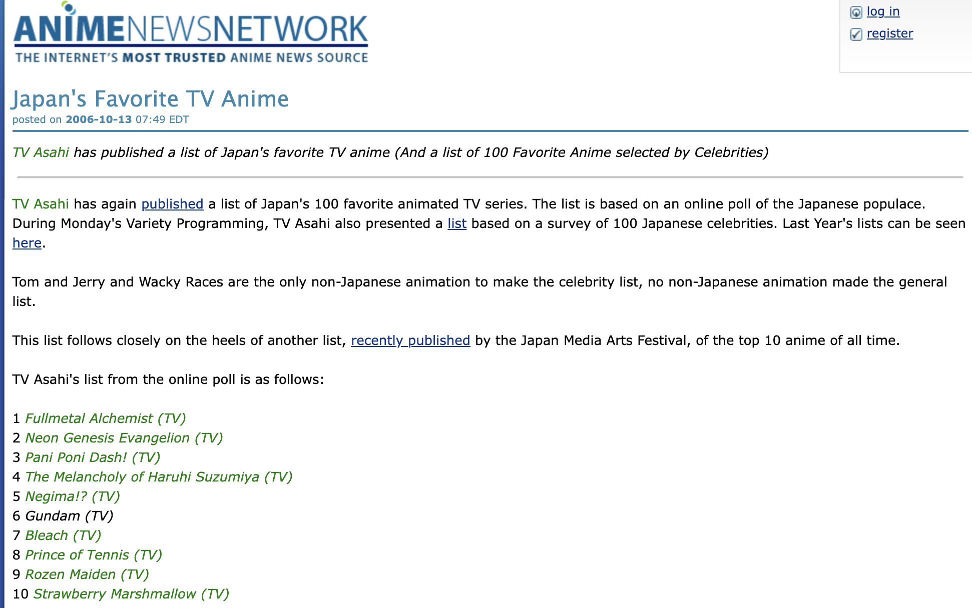 >Нет, такого больше нет. Это самое серьёзное, самое взрослое, реалистичное, исторически достоверное аниме в мире.
