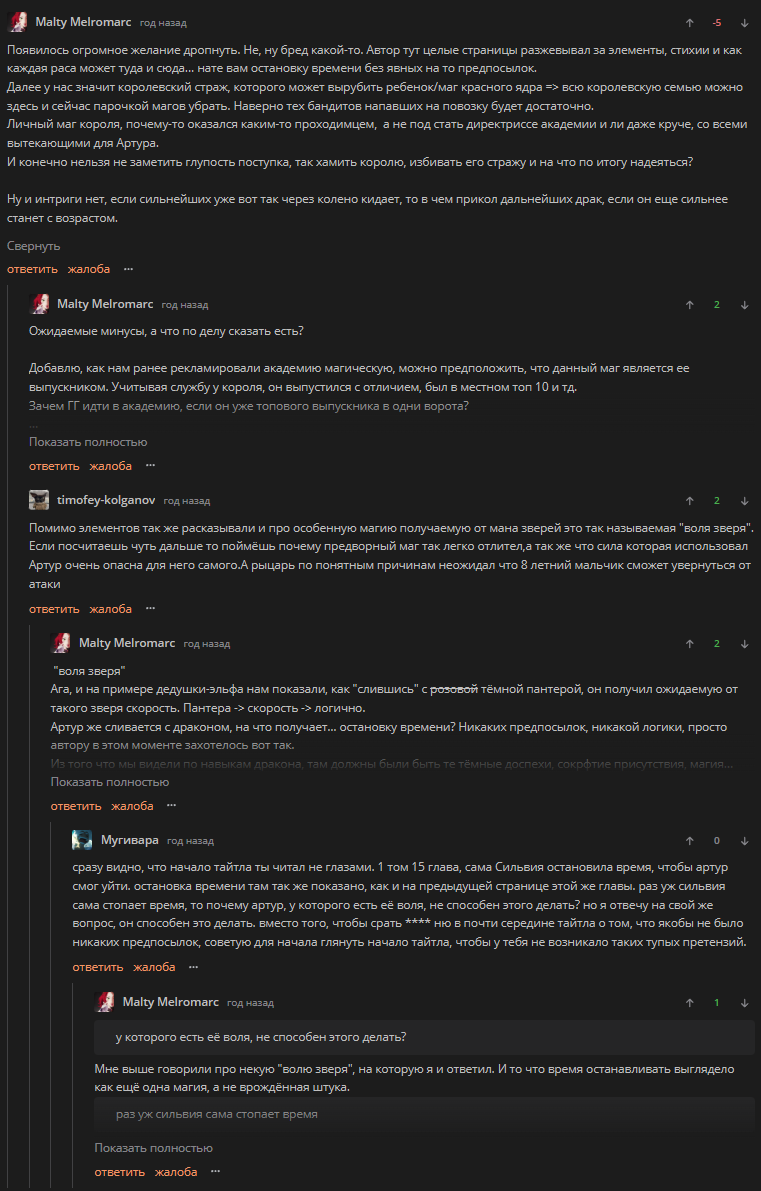 Сначала ГГ хамит королю, что ему реально грозит всеми вытекающими. Затем пиздит личного мага короля. К чему собственно вопрос - какого хрена он в свои 10-12 лет так может, почему у короля маг не самый-самый лучший выпускник топ 10. Опять-же никаких последствий за всю эту выходку. Баланс тайтла хуёвый и не интересный. Маг такое говно, что его 11 летка может обоссать и непонятно чего король ещё живой. Непонятно чего ГГ такой борзый, если его десятком глав ранее магичка на место поставила.
