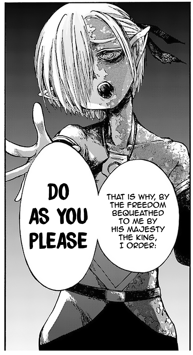 Эльфийка Сера Ерохина спасает четвёртого принца от нападения голодного кролика @ Получает А-ранг, становится главой рыцарей королевства @ Рё Сычикава единолично отбивает нападение империи с некрасивым названием @ Молодец Рё, ты достаточно хорош как для D-ранга, можешь идти копать свой огород