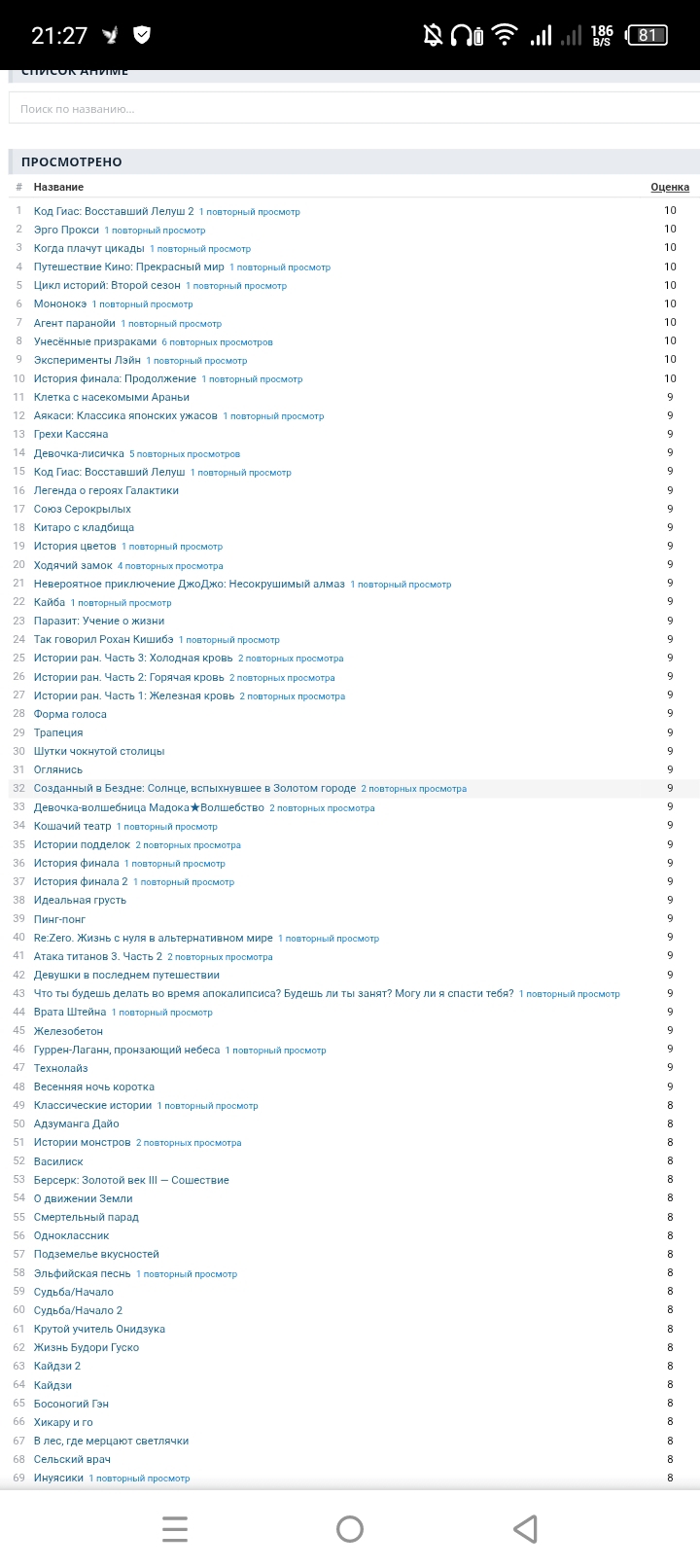 >На количество тайтлов поебать, там половина из них - дропы А понял, странный какой то сайт который дропы мешает вместе с просмотренным. На мальчике такой шизы нету.